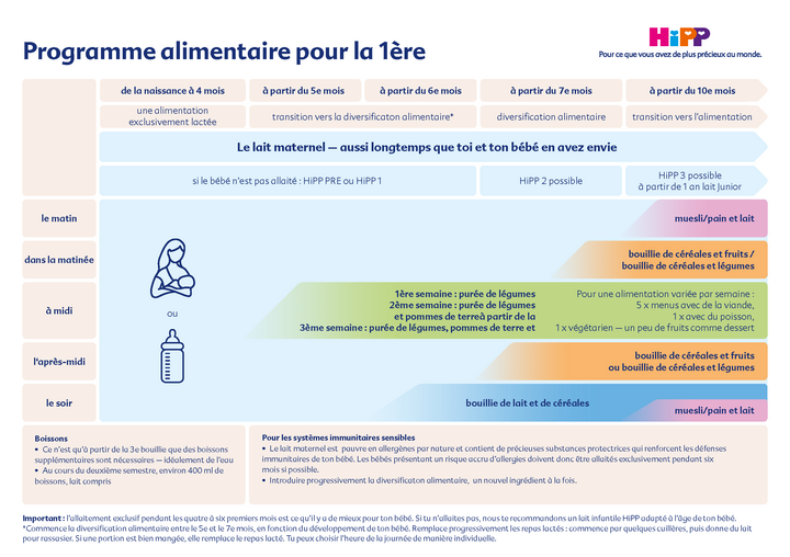 Le plan nutritionnel de HiPP a été développé sur la base des dernières connaissances en termes de nutrition et de pédiatrie et sur la base de notre expérience de longue date. C’est pour cela que nous vous conseillons de vous référer à notre programme nutritionnel.