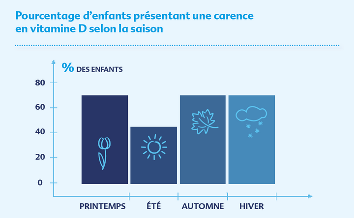 La baisse du taux de vitamine D après l’été est due à un ensoleillement insuffisant. Plus de 90 % de la vitamine D est produite dans la peau et seulement 5 à 10 % est absorbée grâce à l’alimentation. Si l’ensoleillement est trop faible, ce qui est le cas en Allemagne pendant un peu plus de la moitié de l’année, la production de vitamine D aussi devient faible, voire insuffisante.