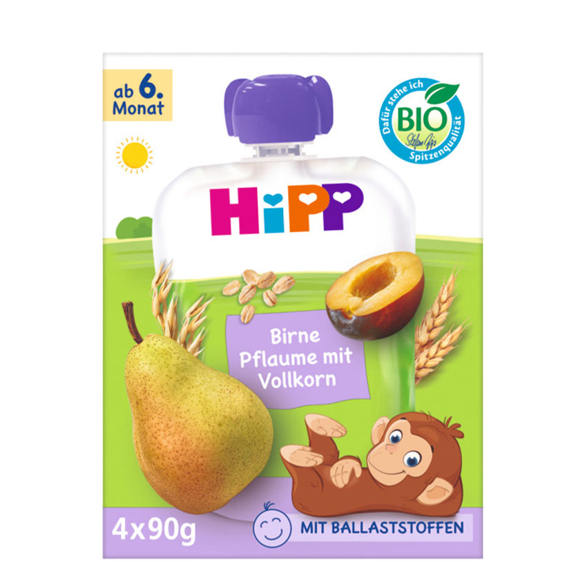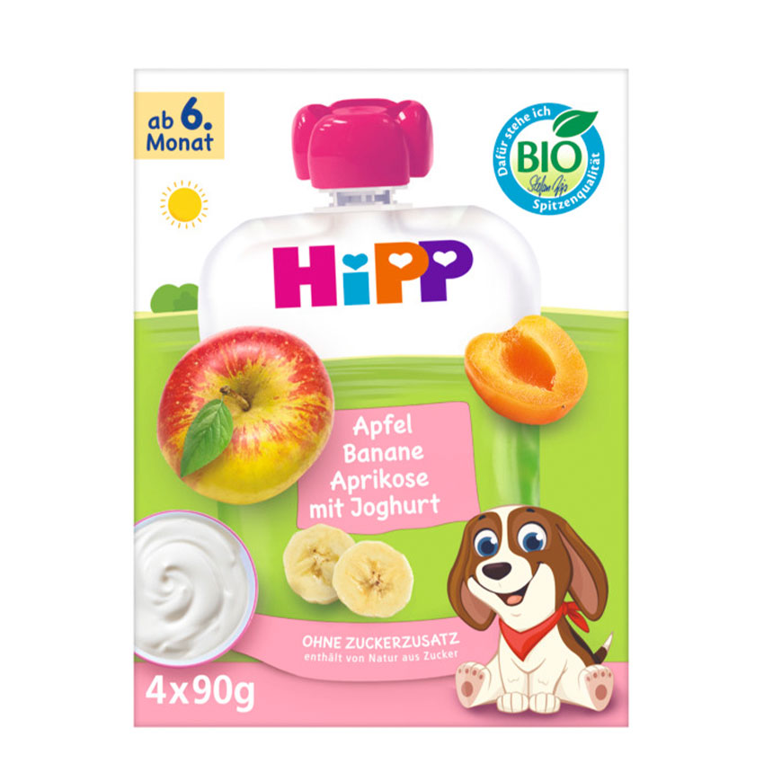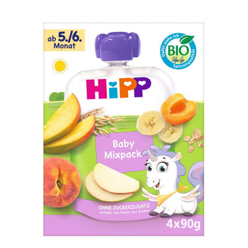 - die luftig leichten HiPP Bio Knusper Stangen werden nur durch natürliche Bio-Saftkonzentratfarben aus Äpfeln und Karotten verfeinert