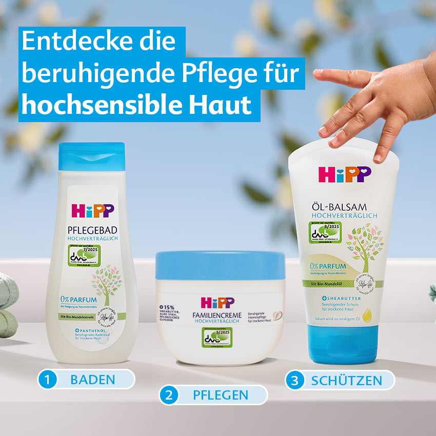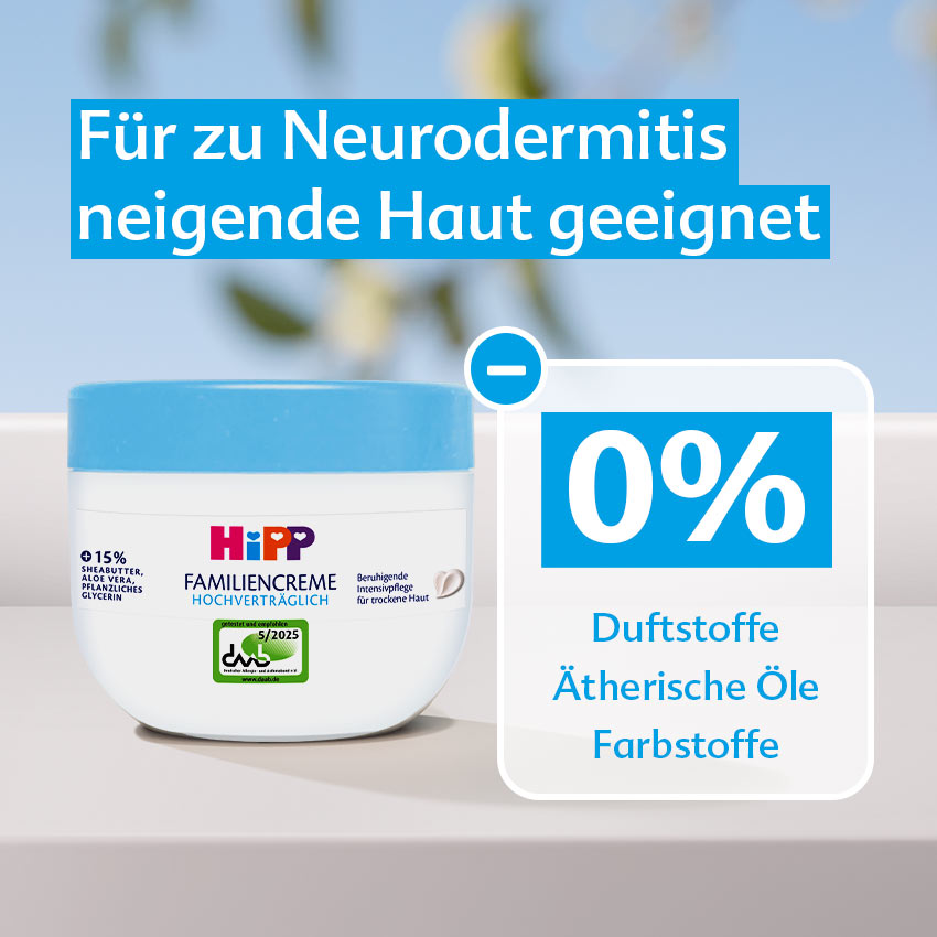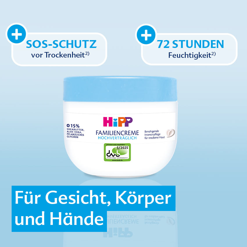 1) 143 Eltern wurden zu der HiPP Hochverträglich Familiencreme befragt. 98% würden sie weiterempfehlen.