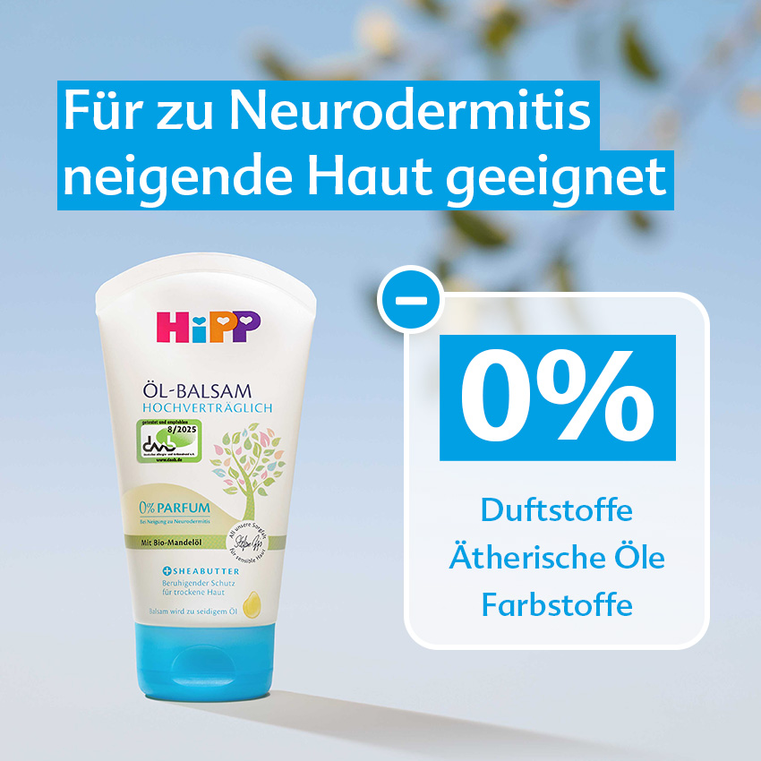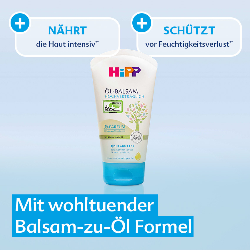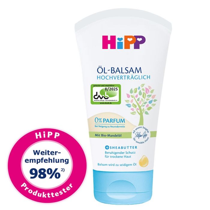 HiPP Hochverträglich Öl-Balsam, beruhigender Schutz für trockene Haut.