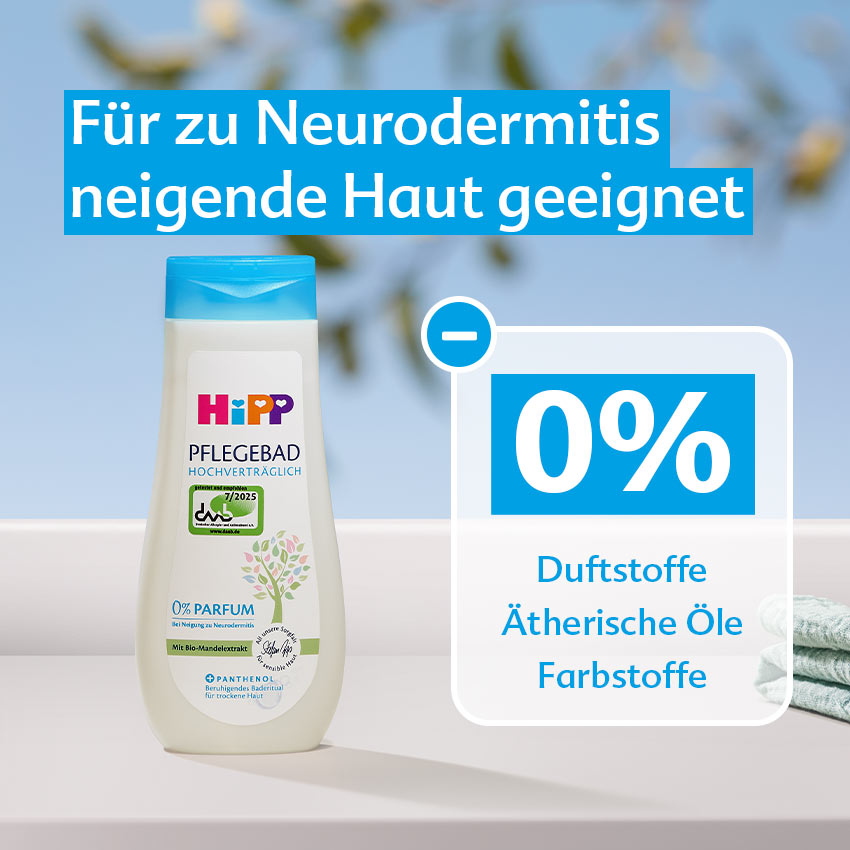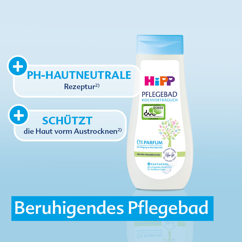 HiPP Hochverträglich Pflegebad, beruhigendes Baderitual für trockene Haut.