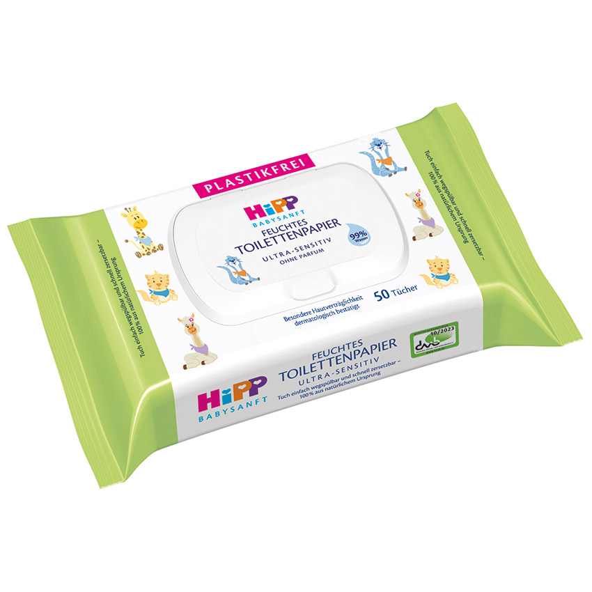 HiPP Babysanft Feuchtes Toilettenpapier, mit einzigartiger Tuchqualität 100% natürlich und biologisch abbaubar.